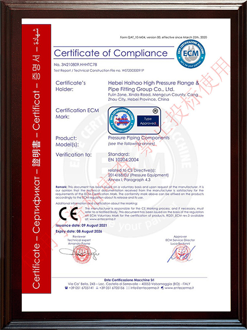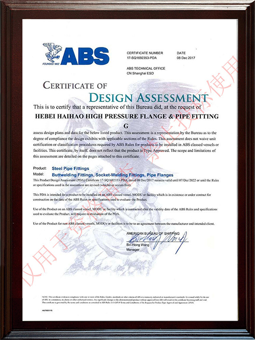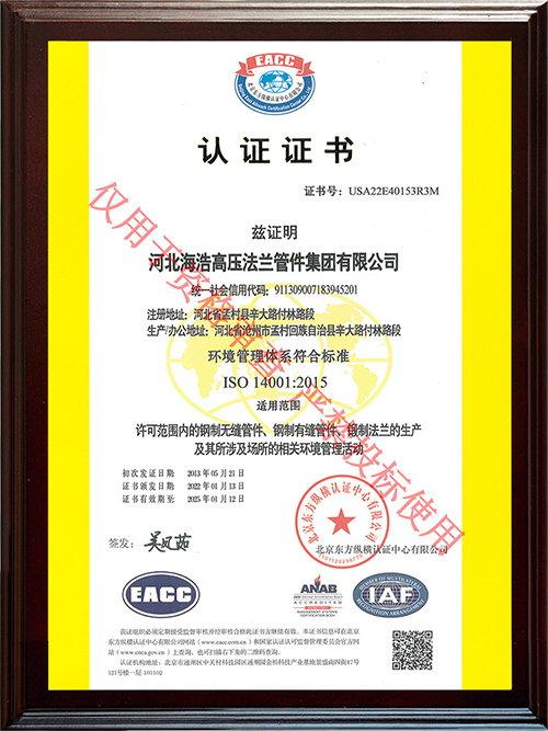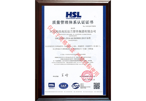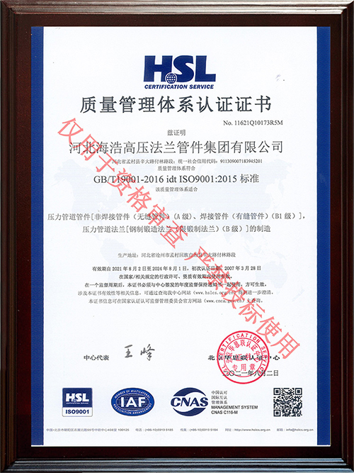 河北海浩高壓法蘭管件集團有限公司榮獲“ISO9001-證書”