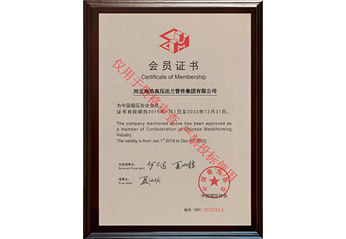 河北海浩高壓法蘭管件集團有限公司榮獲“中國鍛壓協會會員證書”